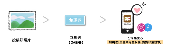 投稿作品愛心數前 1~3 名抽 1 位,獲得「三麗鷗兒童相機」乙台(價值$3500)
